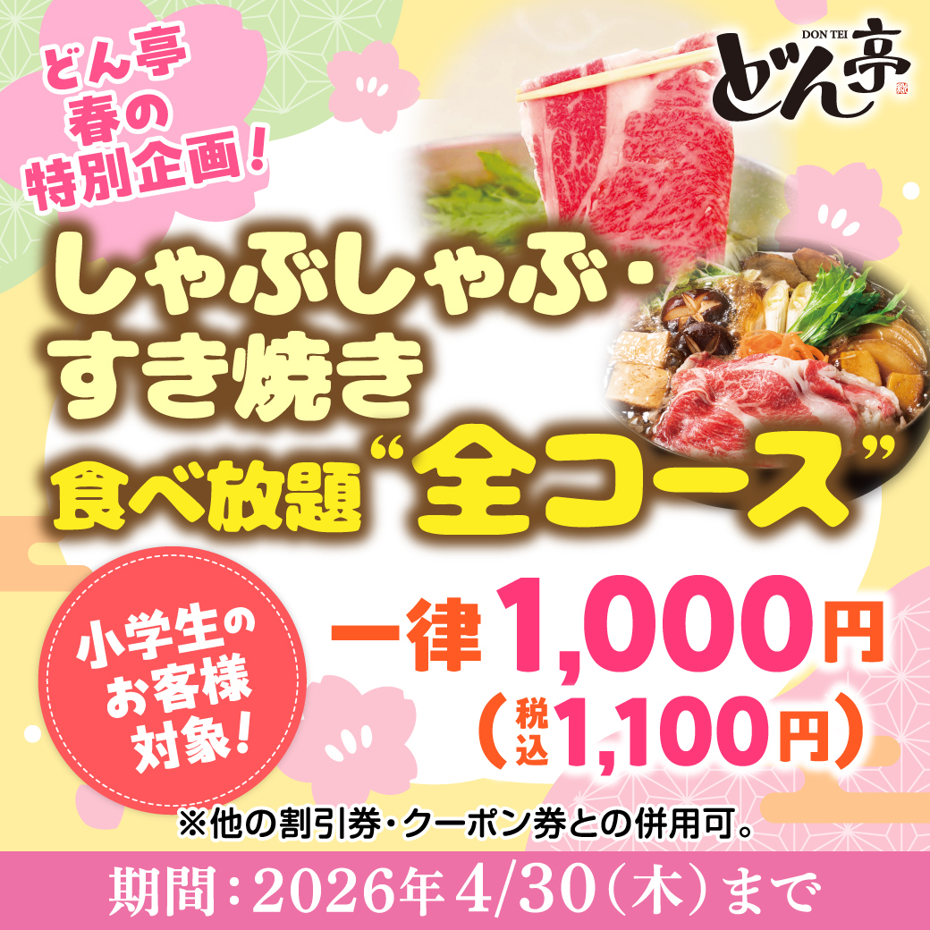 しゃぶしゃぶ/すき焼き食べ放題全コース一律¥1,000キャンペーン!